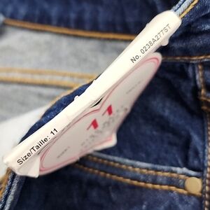 New with tags, Love Culture distressed dark blue denim shorts with high waist and comfy stretch, size 11.