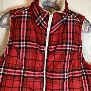 Love Ellen DeGeneres Women's Red Plaid Puffer Sleeveless Reversible Vest Warm