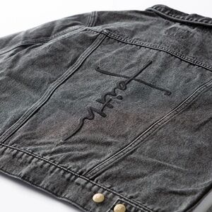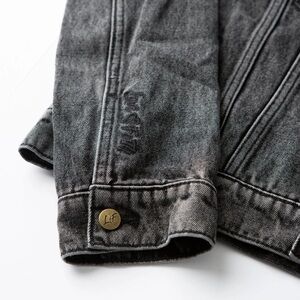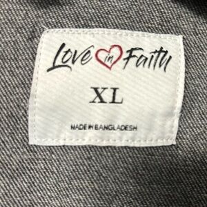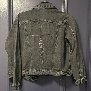 Love In Faith Vintage Washed Faith Cross Denim Jacket Embroidered Black
