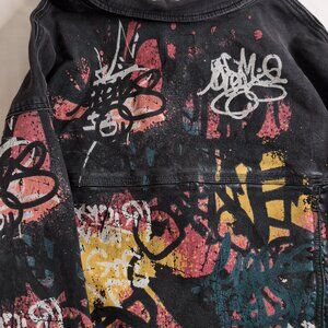 Features: Denim Jacket, Distressed, Art, Graffiti, Goth, Punk, Gothcore, Pockets, Artistic