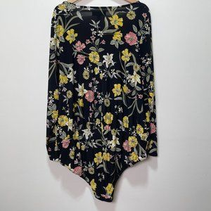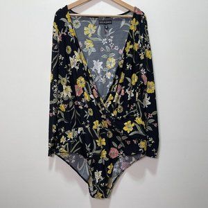 Love & Legend Black Floral Deep V-Neck Bodysuit sz 3X