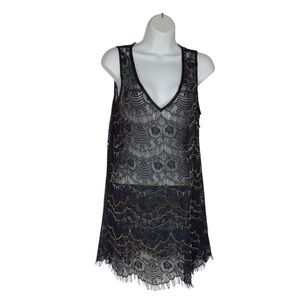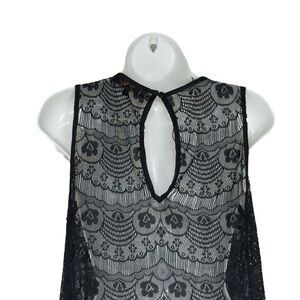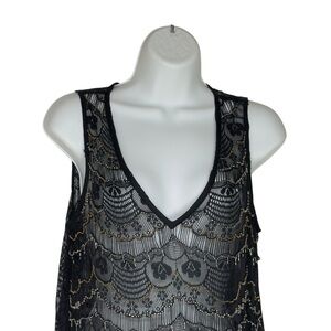 Love & Legend Black Lace With Gold Silver Beading Sheer Sleeveless Top Large
