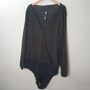 Love & Legend Plus Womens Metallic Long Sleeves Bodysuit Size 4X