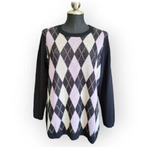 Love & Lwgend Black Pink Argyle (diamond ) patterned Knit Sweater Sz 1X