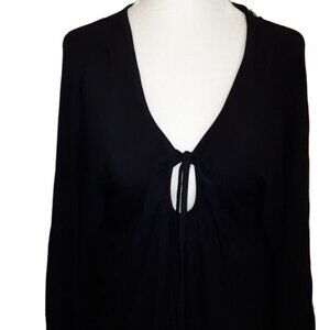 NWT Love & Legend. Long sleeve keyhole tie neck black midi dress in a women's size 0X (plus size).