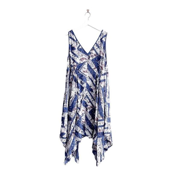 Love & Legend Women's Paisley Asymmetrical Hem Dress Blue White Size 3X Plus