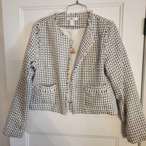Love & Liberty Black White Tweed Fringe Blazer Jacket Women’s Size Large NWT