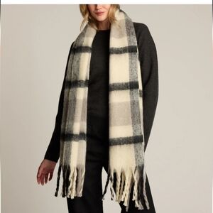 Love & Lore Brushed Fringe Scarf, Greyscale Modern Plaid