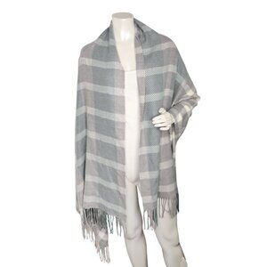 Love & Lore Plaid Oversized Wrap Scarf Shawl Grey White Green Tasseled Office