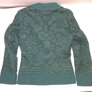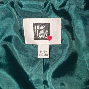 Girls elegant double-breasted jacket by Love Made Love. Made from green lace, with a soft satin lining, it is comfortable and lightweight.