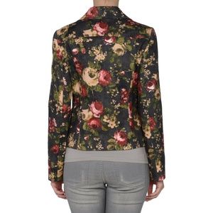 Add a touch of designer flair to your wardrobe with this Love Moschino blazer. Made in Italy from 97% cotton and 3% elastane, this blazer features a beautiful floral pattern in a variety of colors. The blazer is a size 6 and has a regular length coat with long sleeves and a one-button front button style. This blazer is perfect for any season, whether it's summer, fall, or spring. The blazer is lined and has a notch lapel style. It's a great addition to any woman's wardrobe, whether you're looking for a blazer for work or a designer piece for a night out. Get this Love Moschino blazer now and add a touch of Italian fashion to your closet.