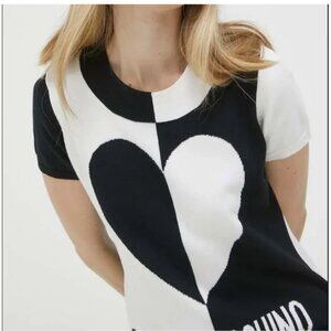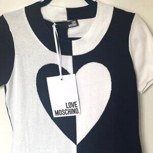 Love Moschino Mini Sweater Dress 8 Black Cotton Logo Black White Heart IT40