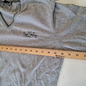Love Moschino V-neck sweater. Love Moschino is embroidered in blue on the left chest.