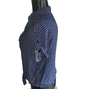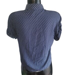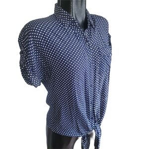 Love Notes Navy Blue Polka Dot Short Sleeve Button Up Top S