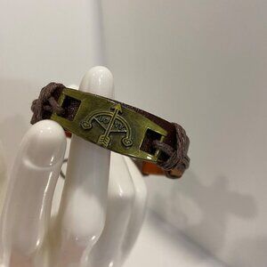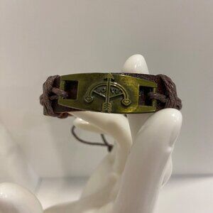 Love Sign Cupids Bow Bracelet Brown genuine Leather Adjustable Wristband