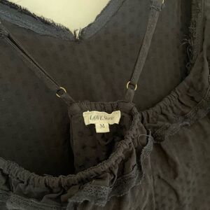 Matching tank / cami with adjustable straps and shorts (with pockets!!) in a silky tonal polka dot fabric. Shorts and tank have a little frill on the bottom. Some fraying of the inner seams on the top.