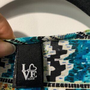 Lightweight and breezy Love Tease kimono robe in a gorgeous blue tribal print with playful fringe hem. Size XS, open-front style, perfect for layering over swimwear, tanks, or dresses. The relaxed fit and flowy silhouette give off effortless boho vibes, making it a go-to piece for festivals, vacations, or casual days.