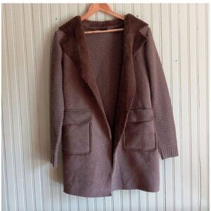 Love Token Harlow Faux Fur Knit Cardigan M Luxe Soft Neutral Winter Fall