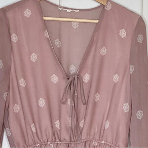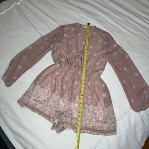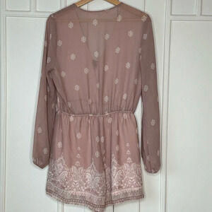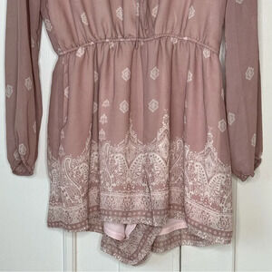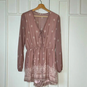 Love Tree Blush Pink Romper Size L long sleeve Paisley detail summer date night