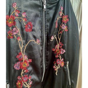 Love Tree bomber jacket with beautiful floral embroidery and zippered pockets. Very lightly worn, almost new condition.