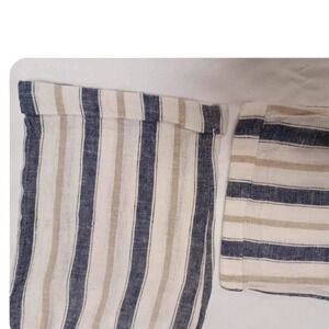 These pants are straight leg and have two flat pockets. The waistband is elastic with a sash attached. These bottoms are cream, charcoal and white in colour.