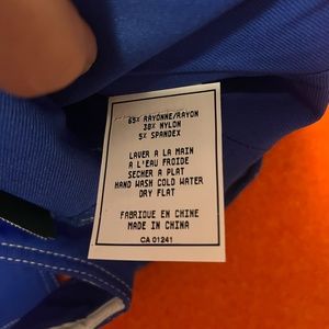 Love & Harmony (sold by Simons) slate blue contrasting seams denim bustier new with tags. Central rectangular opening, ultra stretch denim, back zip closure. 65% rayon, 30% nylon, 5% spandex. Some irregularities in the stitching, please see pics and don't buy if this is an issue for you. Marked size L, please see pictures for measurements. This item comes from a smoke free, pets friendly home. Recycled bags/box used when possible. Please, let me know if you'd like any additional info. Thanks for watching!