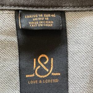 Love and Legend size 14 classic cowboy/biker short denim jacket, distressed to look well broken in. In excellent used condition with no wear, stains or damage noted. Black acid wash reads as dark ash grey. Traditional denim jacket details. Nice look! Of course wear with all your denim, but on trend with skirts and biker boots, big knit sweaters. Wear over sweaters for multi layered look or under cape for even warmer use. Update your day or club wear with this trending look in a jacket. Add some completing pieces from Our Closet (some suggestions shown all listed and priced separately), build a bundle, save a bundle! There's always something Fresh at Lemon Squeezy Shop🍋