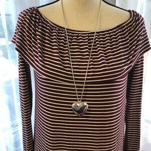 Love fire burgundy striped dress shoulder SZ M NWOT