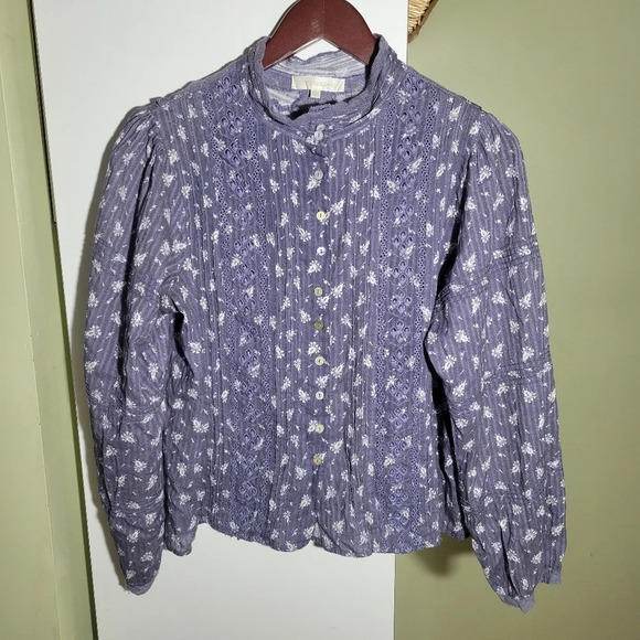 Love shack fancy embroidered eyelet lace floral button blouse purple small