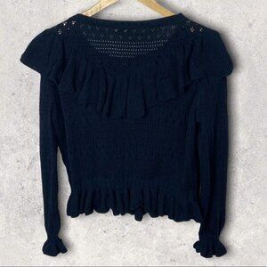LoveShackFancy Alpaca Knit Sweater Blue Size Large Ruffle Navy Pointelle Boho L