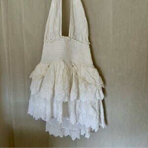 LoveShackFancy Deanna White Cotton Halter Neck Dress Size L