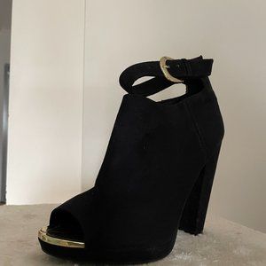 Loved, VGUC H&M Black Suede Peep Toe Booties with Gold Details 7.5/8