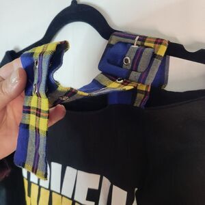 "Lovely" Korean Black and Yellow Plaid Strap Shirt