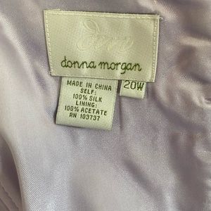 Another stunner from Donna Morgan! The sheer pastel silk flutters over a layer of matching liner. This strapless dress has beautiful woven detailing on the bodice with a slight sweetheart neckline. Internal molded wiring helps to hold the dress in place all night long.