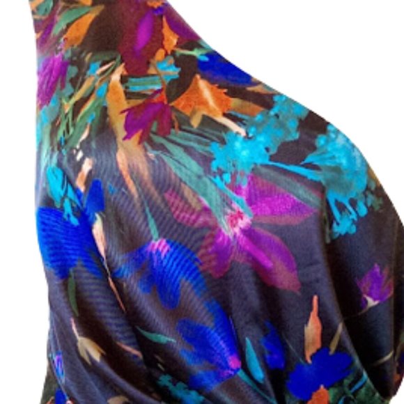 Lovely Satin Floral Asymmetrical One-Shoulder Satin Dress Size 6 Petite --