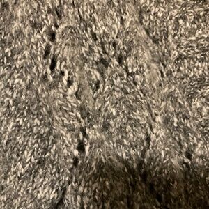 Soft and comfy….is how this cardigan by Paraphrase feels. Size medium. Great detailing with a hood. Textured knit in white and grey.