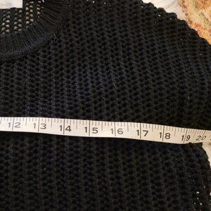 Gorgeous black, open cable knit sweater with long sleeves and beautiful, feminine bell cuffs!