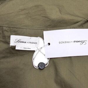 Lovers & Friends Button Front V-Neck Puff Sleeve Top Green Size Small