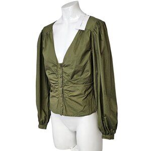 Lovers & Friends Button Front V-Neck Puff Sleeve Top Green Size Small