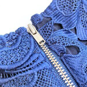 Pretty Lovers + Friends shift dress with an elaborate floral lace design in a luxurious Navy blue hue ⚓️⛴💙✨Features a dropped waist, silver zipper closure on back, and a high rounded neck.