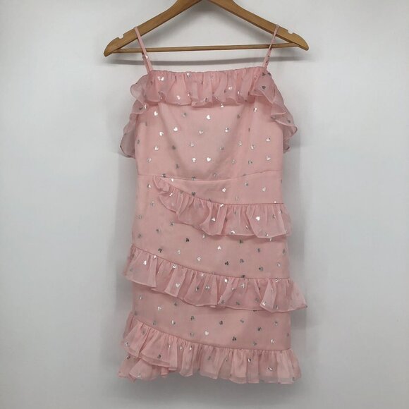Lovers + Friends Trinity Powder Pink ruffle heart print tiered Mini Dress SP