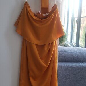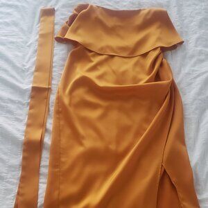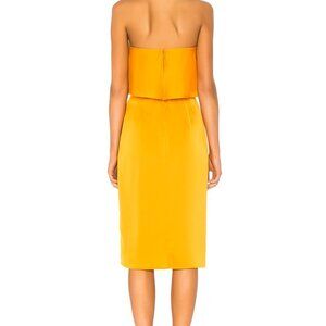 A sunny shade of yellow shapes Lovers + Friends' Violet Midi. Showcasing your decolletage, the sexy design is complimented by a thigh grazing slit that leads to a gathered waist accent, further enhancing your feminine figure.