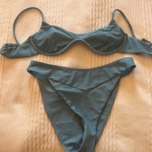 Super flattering bikini with underwire in the top. Both top and bottom are size small.