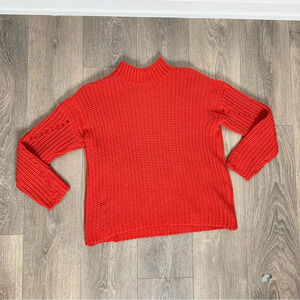 Revolve Lovers and Friends Clea Sweater Red Chunky Knit Shredded Distressed
