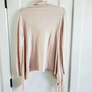 Lovestitch drapey fringe wrap sweater/cardigan. Has 2 buttons near the shoulders so it can be worn open or closed. Super soft and cozy.