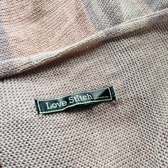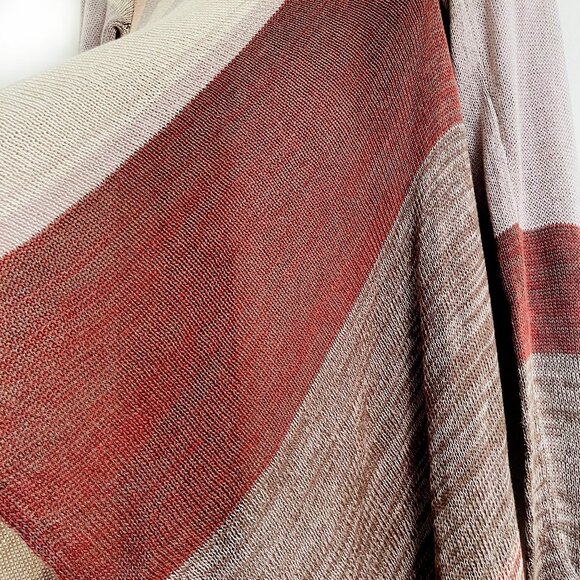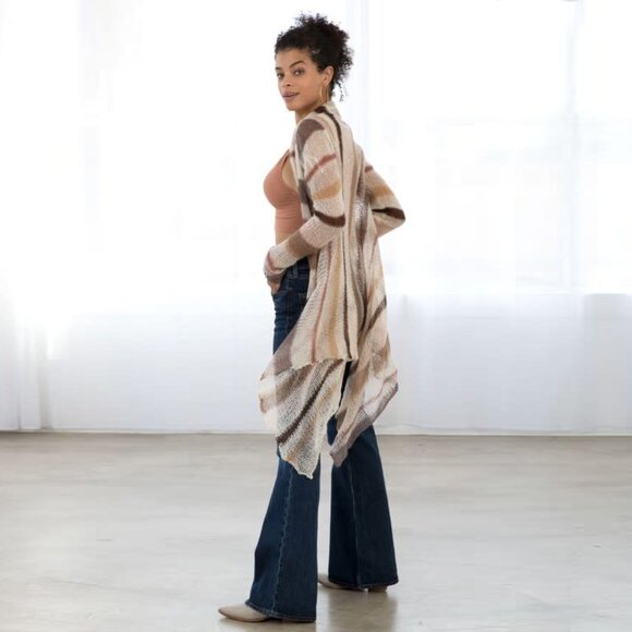 DESCRIPTION: This very soft and lightweight sweater is quite versatile for many seasons! Also looks great when closed and cinched with a big belt. Festival-boho style.