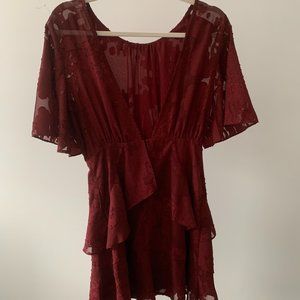Mendocino Low Back Mini Tiered Dress Size Small Colour Maroon/Deep Red Worn Once