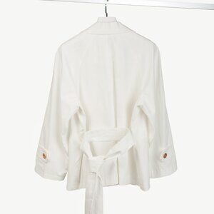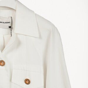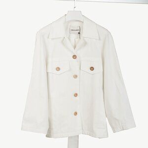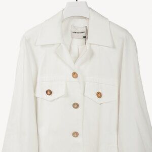 Upgrade your wardrobe with the Low Classic 22PF Down Pocket Cotton-Blend Jacket in white. This carryover jacket features a round shoulder and raglan sleeve line, and a low classic button design. The belt strap adds a touch of flair to this casual cotton jacket.