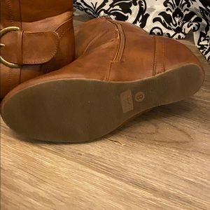 Super stylish brown boots. Worn outside once. They are a size 8. Excellent condition and look adorable with skinny’s.