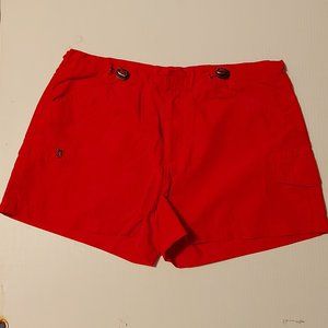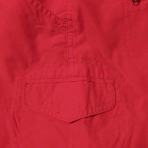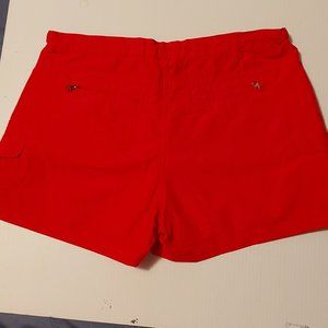 Velcro closures on waist and pockets. Waist can be cinched in. Waist 32" low riders. Length 11.5" True red.